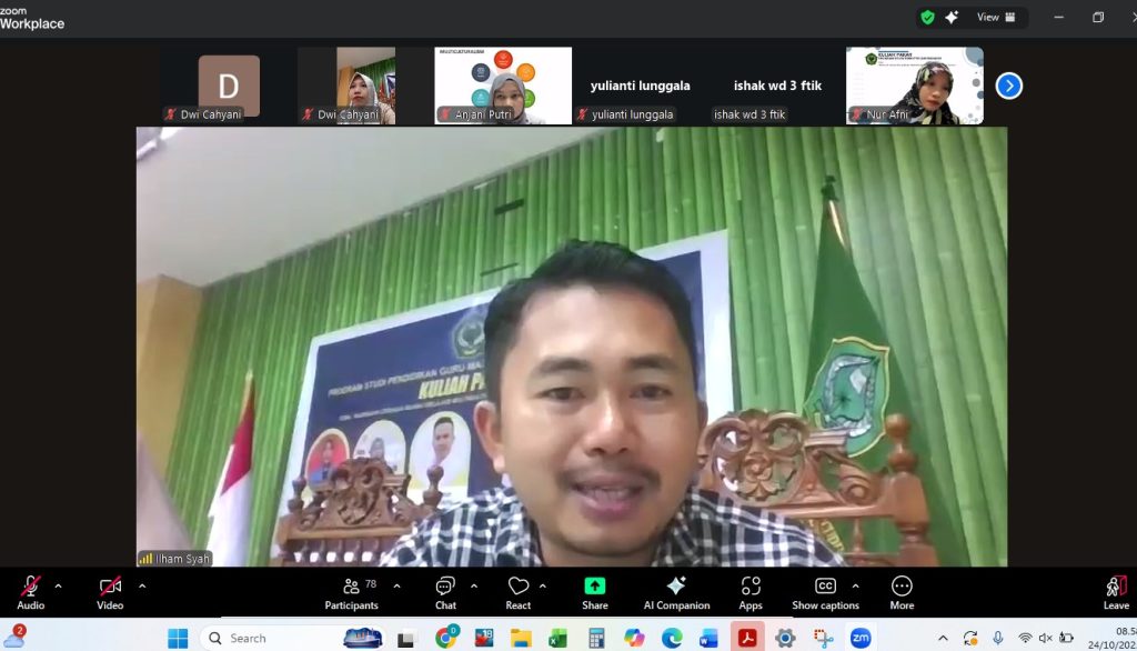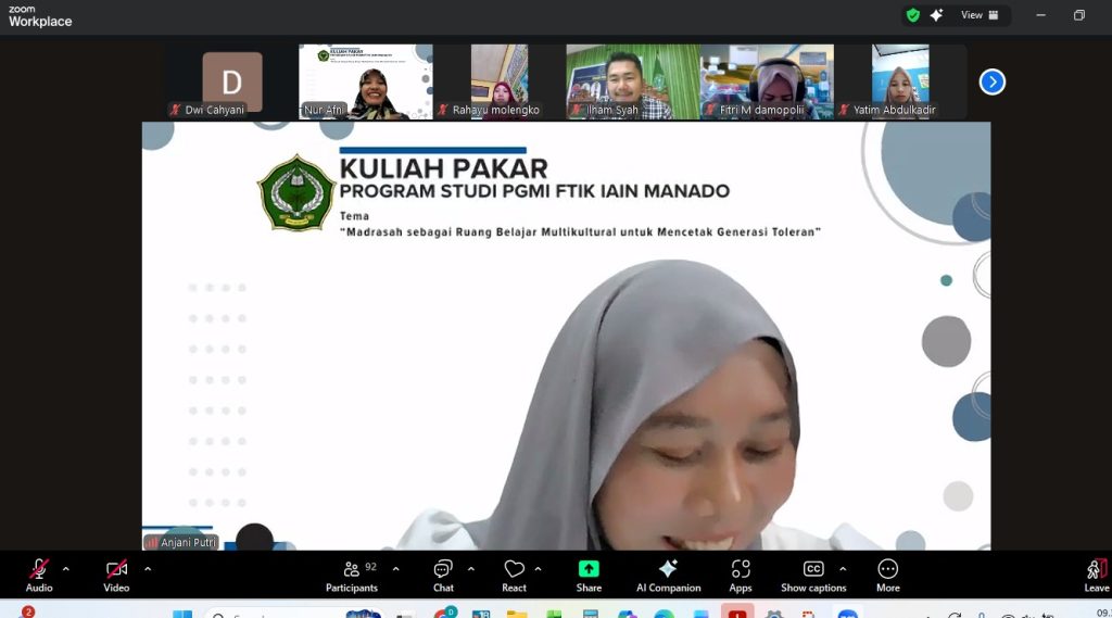 Kuliah pakar dilaksanakan secara hybrid, diikuti oleh 50 peserta secara luring dan 96 peserta secara daring melalui platform Zoom Meeting. Para peserta terdiri atas mahasiswa PGMI IAIN Manado, para dosen, serta guru-guru yang menjadi mitra Prodi.